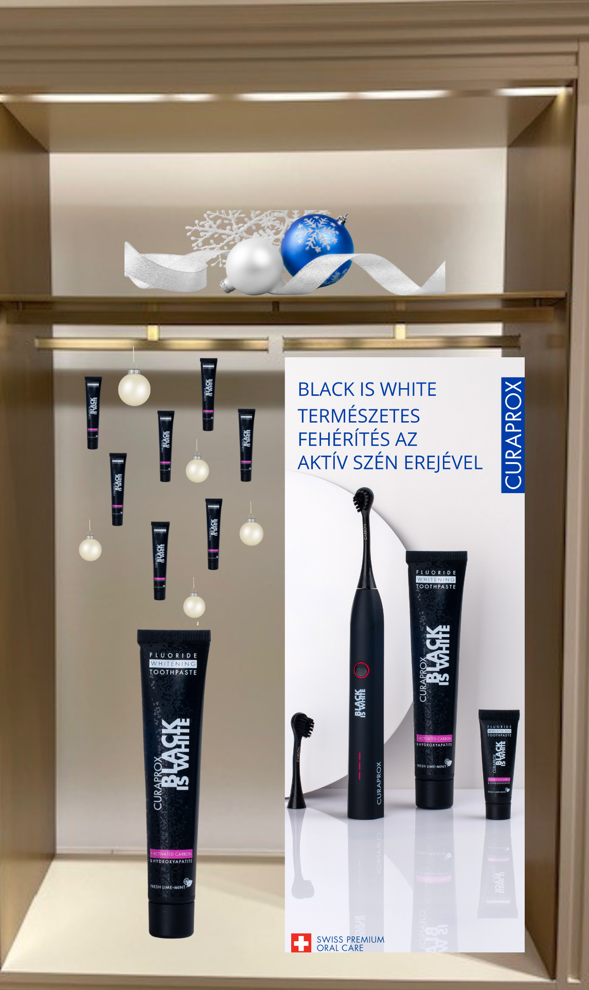 A kivitelezés során minden szükséges eszközt beszereztünk, és gondoskodtunk a teljes berendezés professzionális összeállításáról is. Az eredmény egy dinamikus, friss és azonnal feltűnő Curaprox-élmény lett — tele színekkel, energiával és életre keltett márkaüzenetekkel.